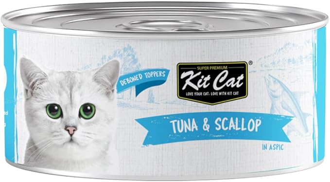 Kit Cat wet food was created by our nutritionists who are also cat lovers and made with the goodness of carefully selected natural ingredients which contains no added colours or preservatives. our Kit cat is 100% Grain Free Diet offers your catFresh Deboned Tuna -Fructooligosaccharides Taurine -Scallop Flavour Tuna Extract -Smoked Skipjack Tuna flakes Water sufficient for Processing -Gelling agents Vitamin E supplements(Alpha-Tocopherol)