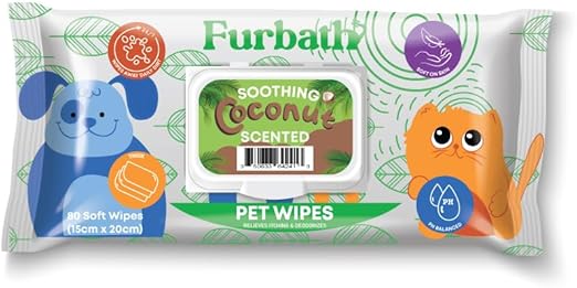 Furbath Natural Pet Wipes with coconut scent bring a tropical touch to your pet's hygiene routine. The natural coconut fragrance is delightful and refreshing, leaving your pet smelling great. These wipes are made with gentle, natural ingredients, ensuring safe use on all pets. Each pack contains 80 wipes, perfect for regular maintenance. Ideal for a fresh, tropical scent that lasts