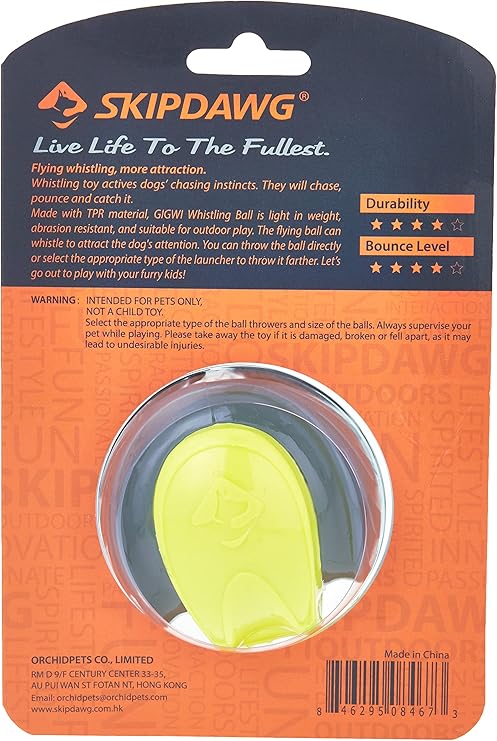 Whistling toy actives dogs’ chasing instincts, They will chase, pounce and catch it. Made with TPR material, GiGwi Whistling Ball is light in weight, abrasion-resistant, and suitable for outdoor play, `the flying ball can whistle to attract the dogs attention. You can throw the ball directly or select the appropriate type of launcher to throw it farther. Let’s go out to play with your furry kids!